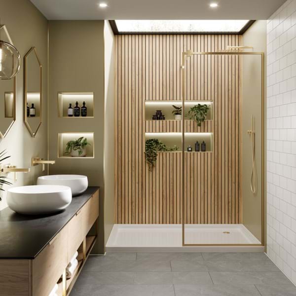 Het Naturepanel wandpaneel 270x58cm brengt de warme uitstraling van echt hout naar je badkamer, zonder het onderhoud van massief hout. Geïnspireerd door de natuur en voorzien van verfijnde lamellen, creëer je eenvoudig een luxe en rustgevende wandafwerking.